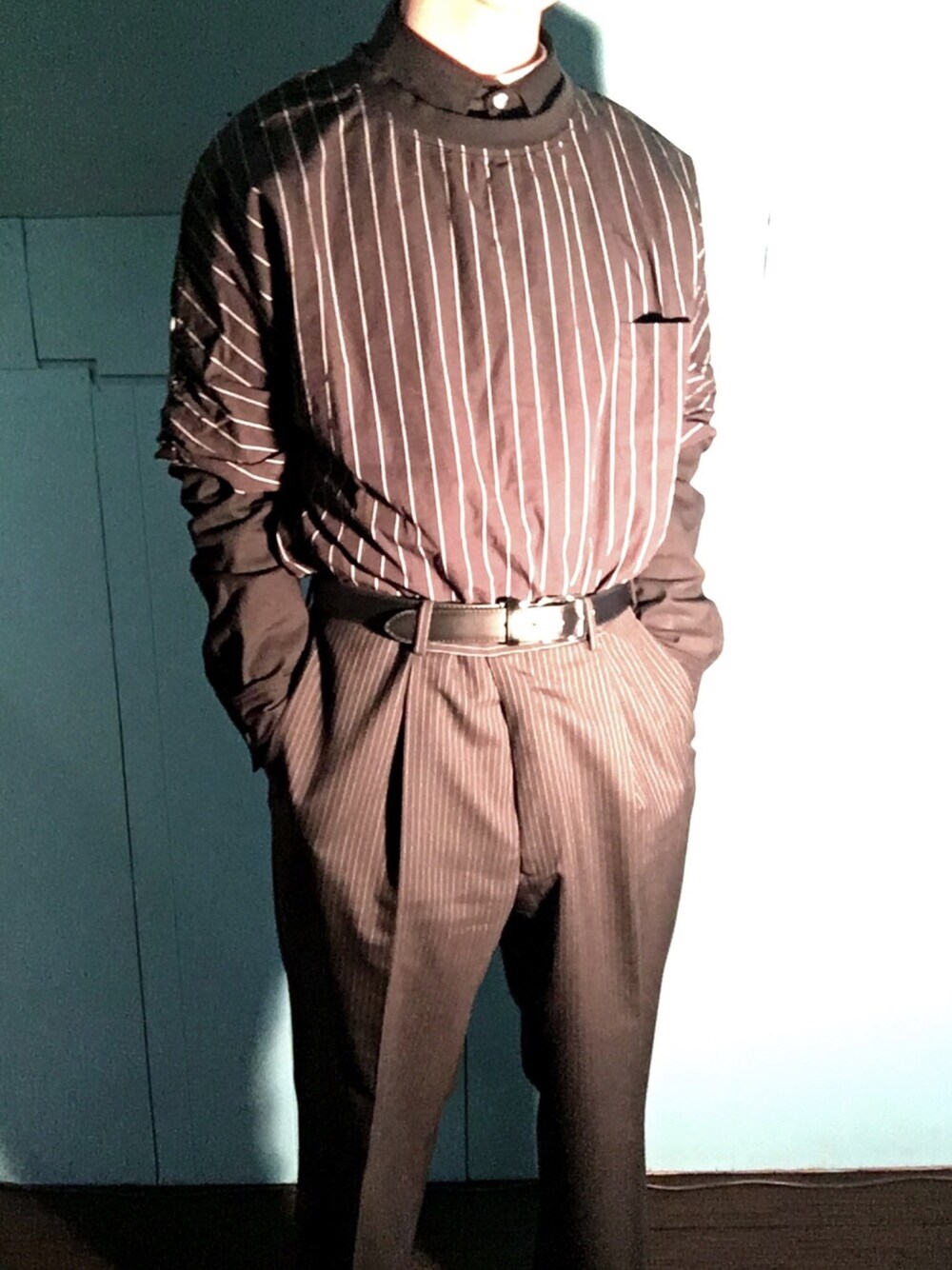 こんばんは! 父から貰ったスーツがちょうどワイドパンツみたいで気に入ってます 今日はいい事があったので全身ブラックコーデです 全身黒い女の子が好きです
