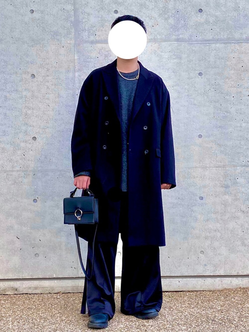 Taiのチェスターコート「ウーリーテック/ダブルチェスターロングコート」を使ったコーディネート
