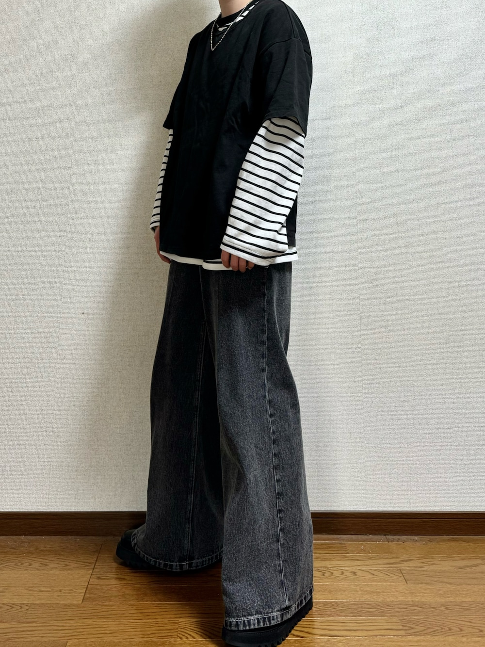 半袖T×ボーダーロンT🖤🤍🖤🤍🖤