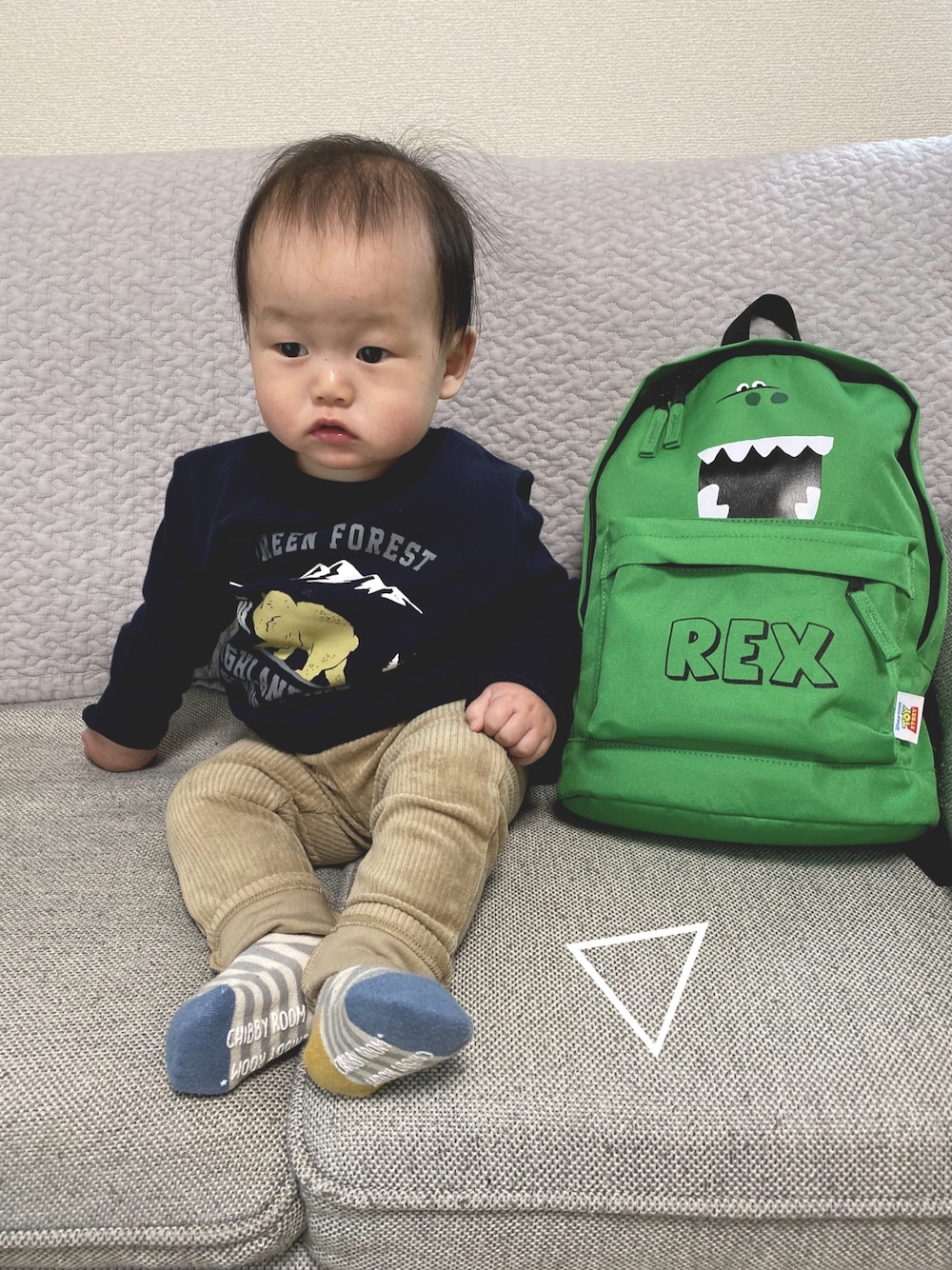 来年用にセールで買った90サイズの服 我慢できずに着せる母 案の定おっきい( ᐛ )