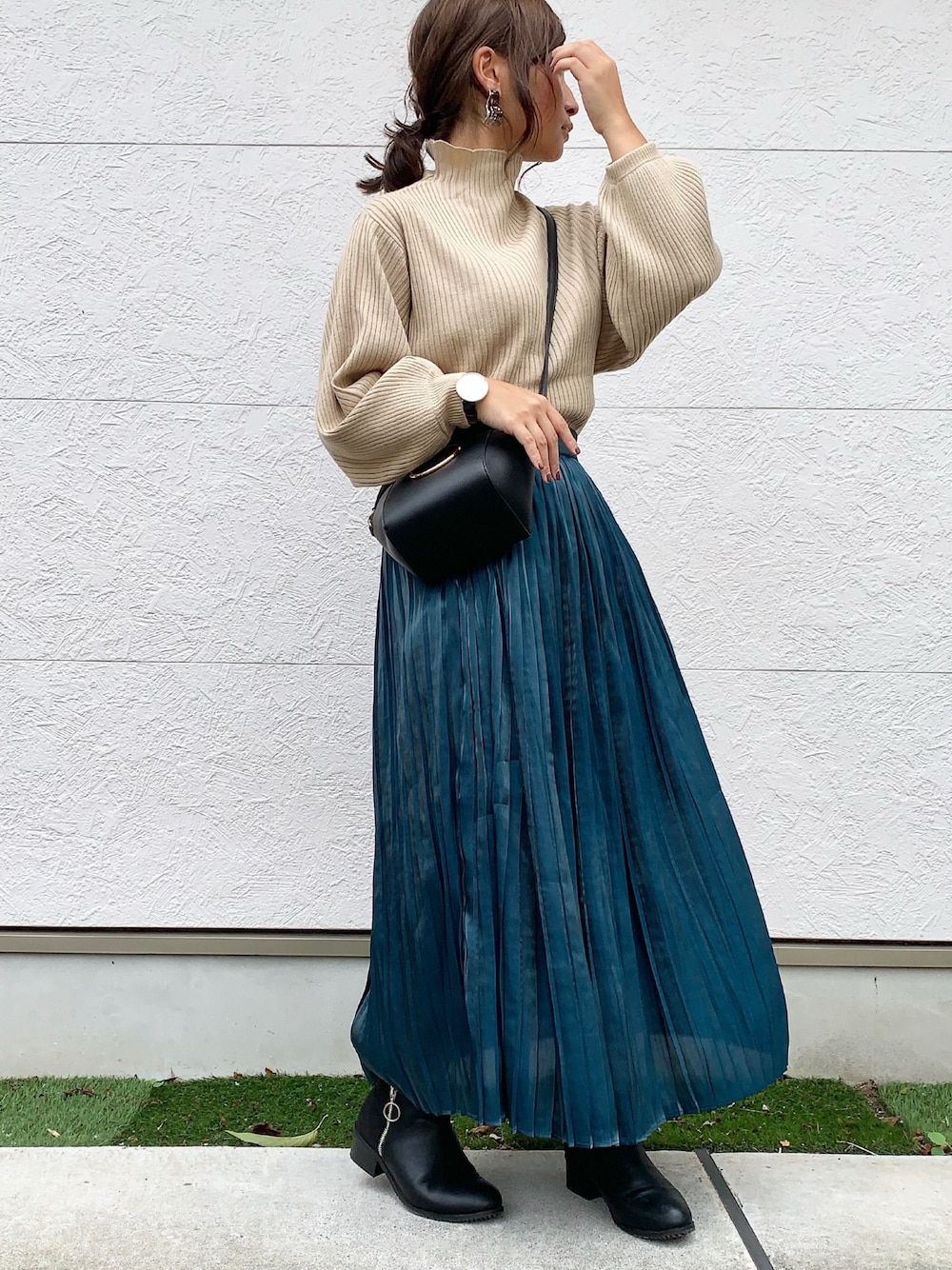 Taiyou(たいよう)のニット/セーター「ボリュームスリーブハイネックリブニット」を使ったコーディネート