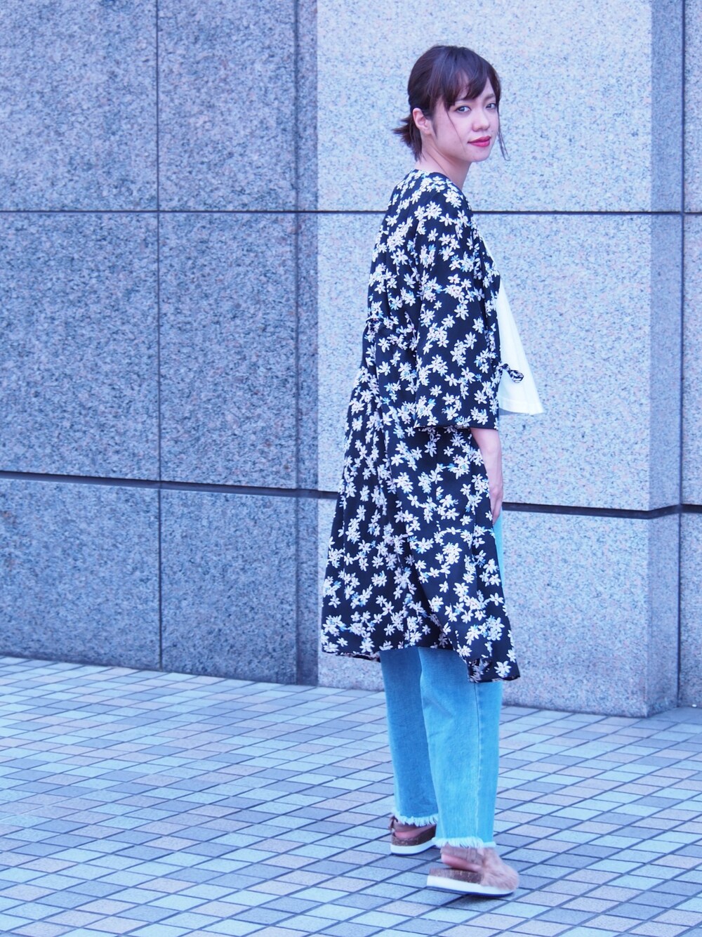 moeのシャツワンピース「花柄プリントワンピース」を使ったコーディネート