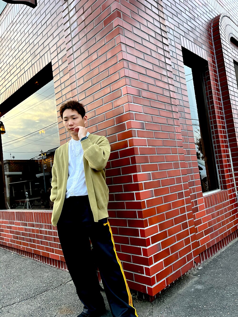 今回はストリートミックスなコーデを紹介! トップスをノーカラーシャツと秋色カーディガンにすることで大人なキレイめを出すつつ、パンツをトラックパンツに! 外しの要素で今時感を演出! ギャップもあり一段階上のオシャレに! 足元はローファーにすることでパンツを際立たせます!