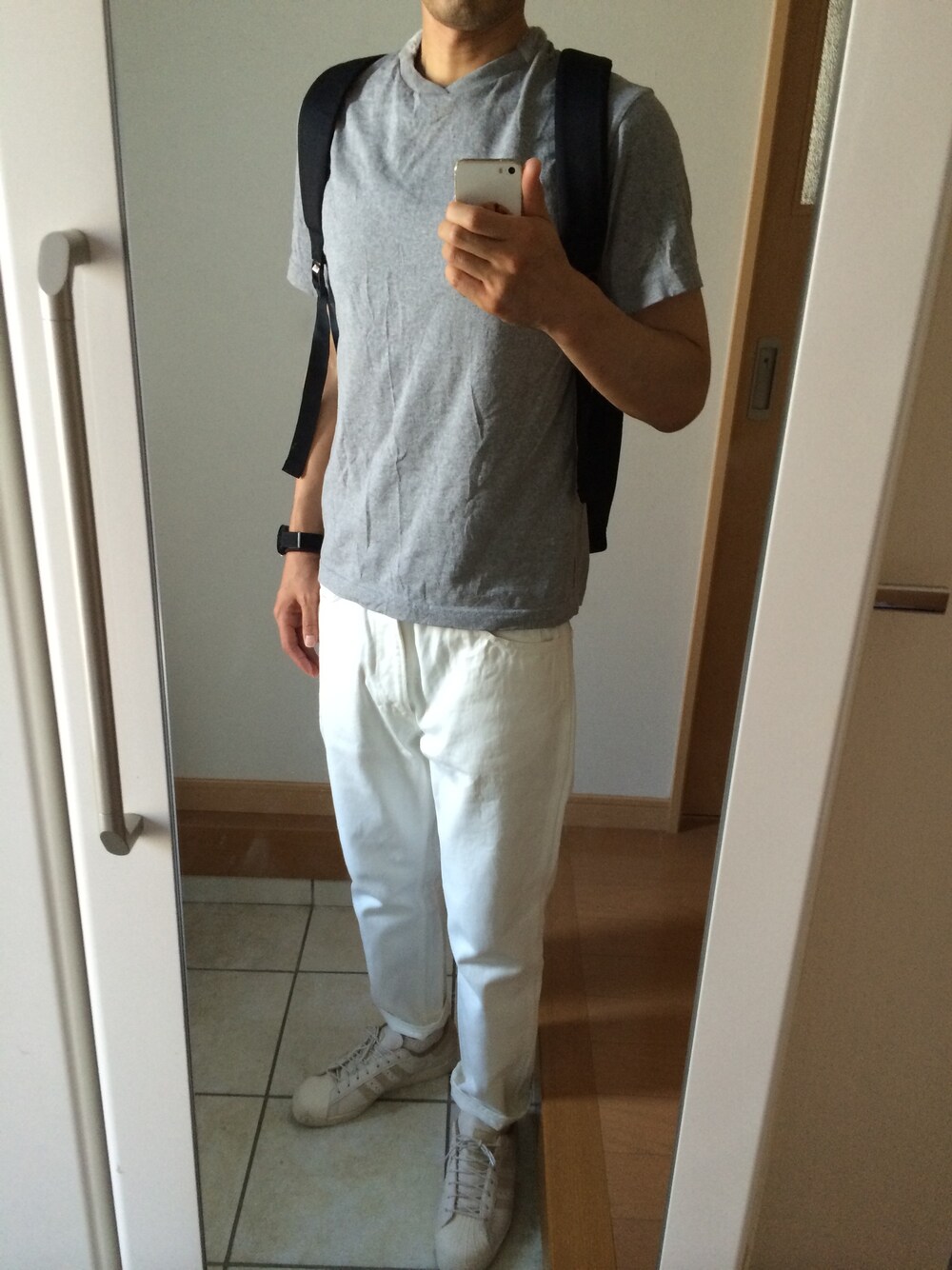 Nuggetsのファー付Tシャツで、 さりげなく秋アピールです。 薄色コーデなので、 UNUSEDの太めのホワイトデニムで ボリュームを出し、 少し黒をプラスして引き締めました。 ( ̄(工) ̄)