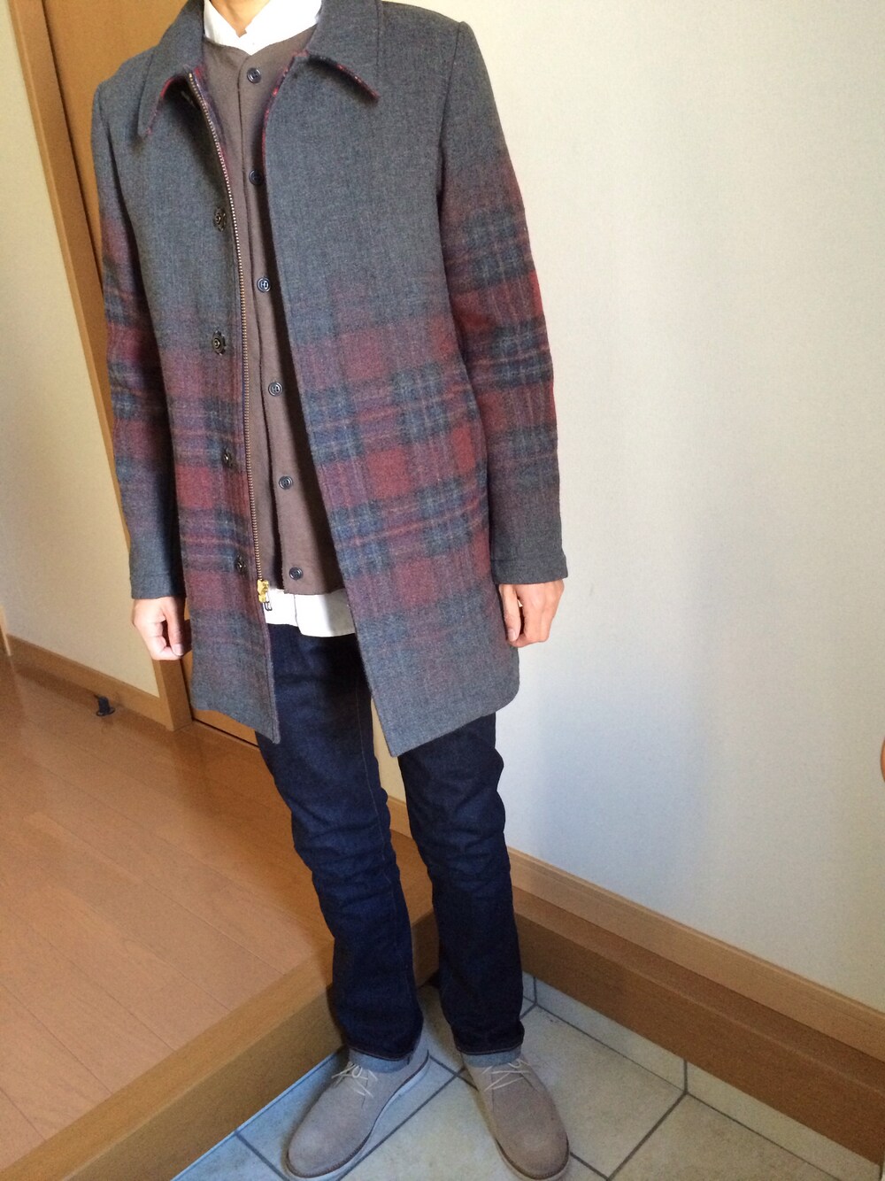 takのその他アウター「Reversible Needlepunching Check Soutien Collar Coat」を使ったコーディネート