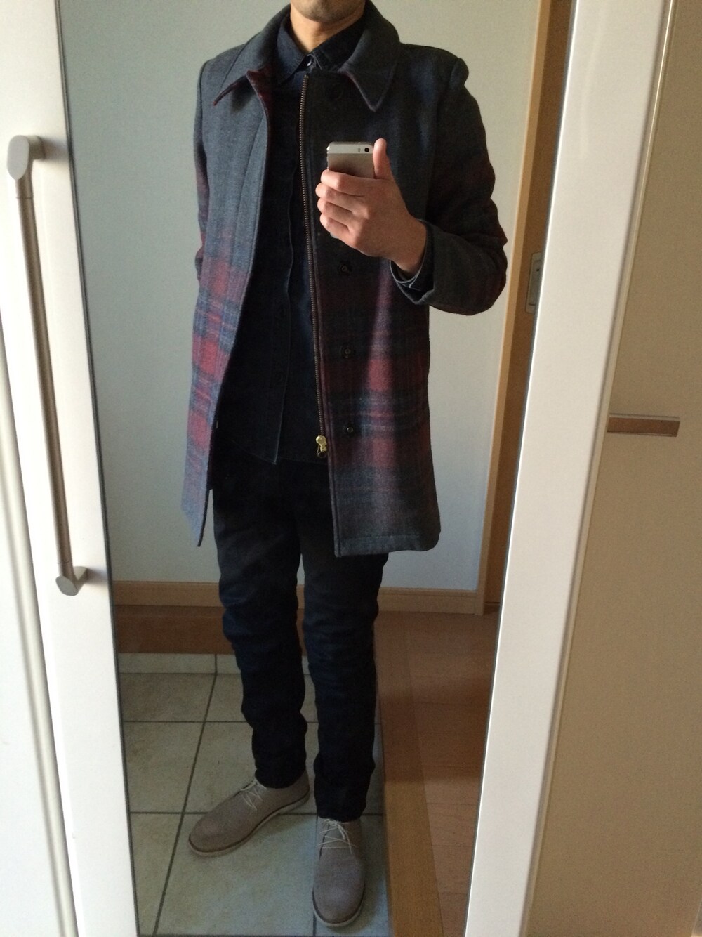 takのその他アウター「Reversible Needlepunching Check Soutien Collar Coat」を使ったコーディネート
