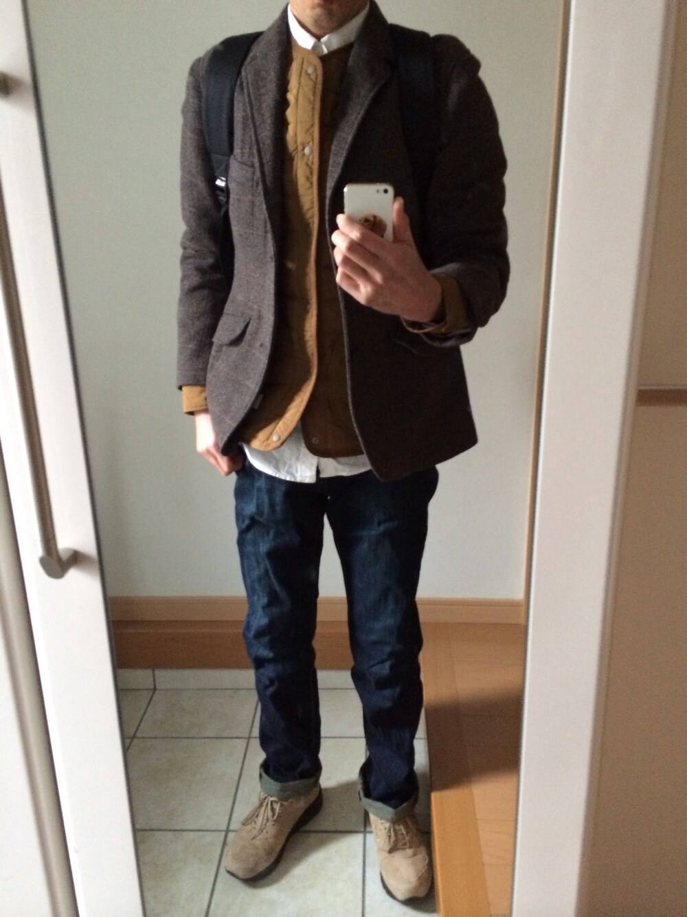 ジャケットはアダムエロペ シャツ&パンツはUNIQLO スニーカーはnew balance1700 です。