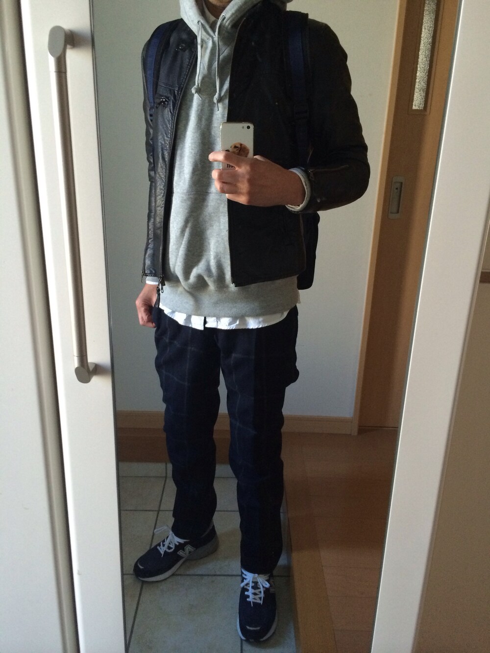 ジャケット、パーカー、シャツはUNIQLO バックパックはWM です。