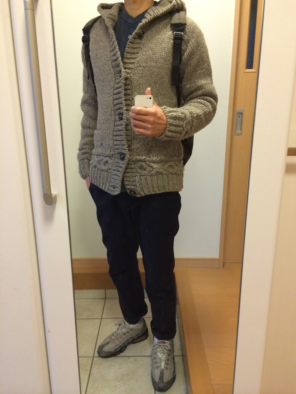 スニーカーはエアマックス バックパックはグローバルワーク パンツはUNIQLO です。