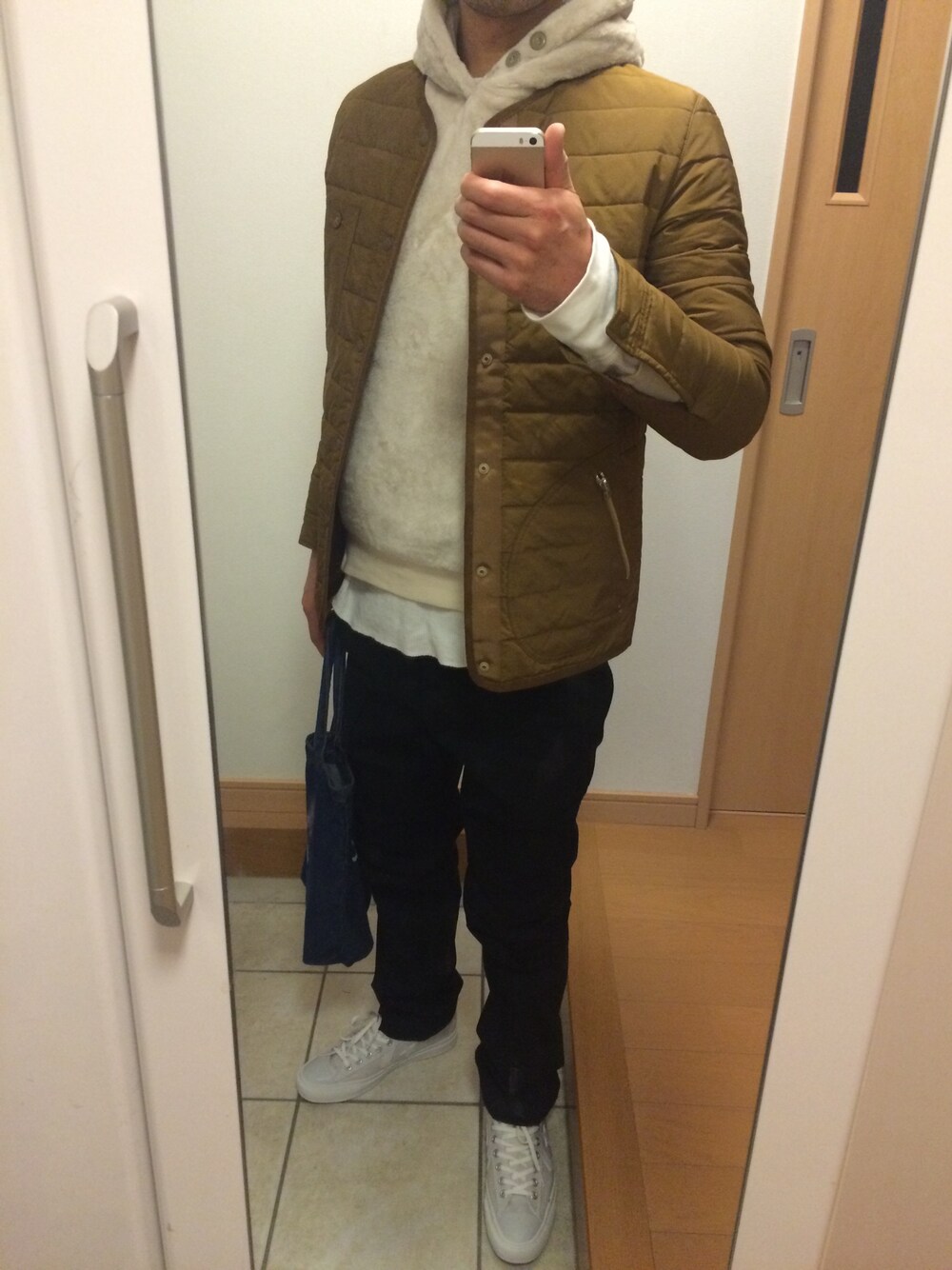 takのノーカラージャケット「E/N QUILTING CREW-NECK JACKET」を使ったコーディネート