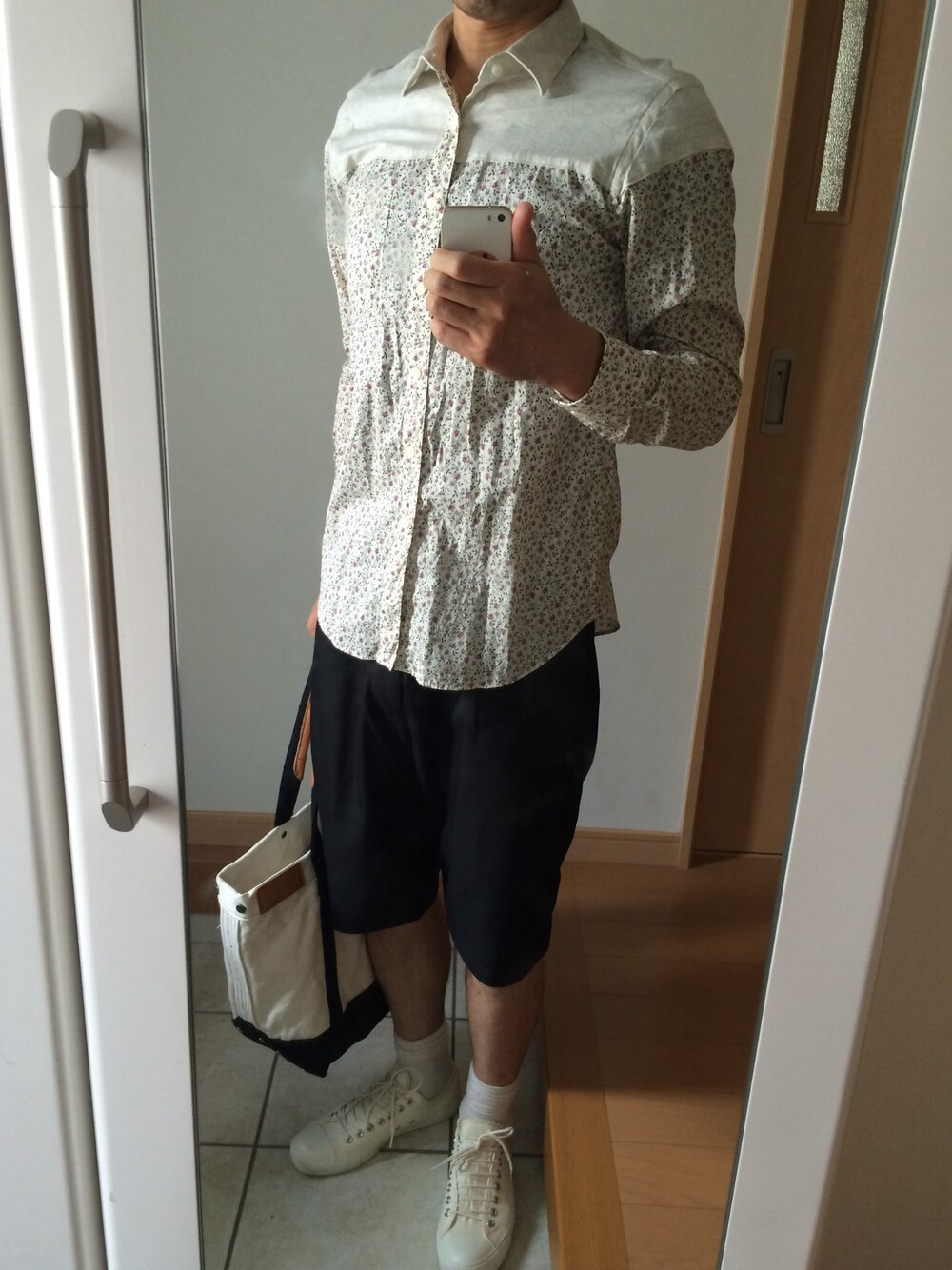 トートバッグ:JS 数年前に一目ボレで購入した CASH CAのLIBERTY花柄シャツです。 ボタニカル柄が流行ですが、 持って無いので今年も花柄で 笑 去年までは、同系色のパンツで合わせてましたが、 今年は流行色?の黒にしてみました。 あまり持ってませんが、 花柄の中でも1番のお気に入りです。 ( ˊ̱˂˃ˋ̱ )