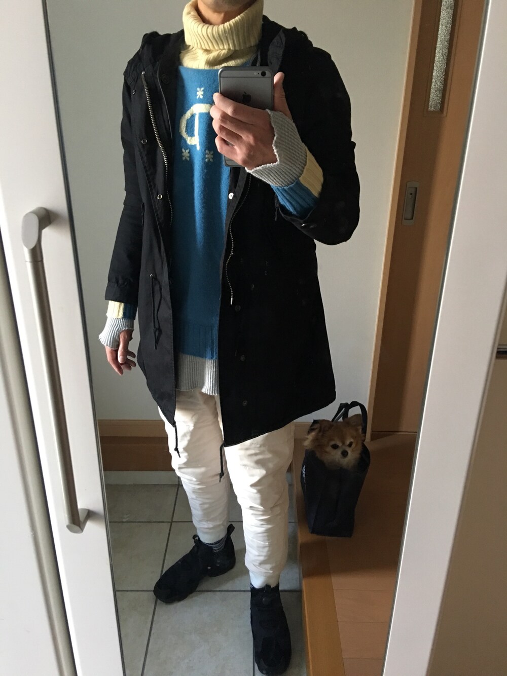 コート:シップス ニット:ディーゼル ダウンパンツ:アローズ