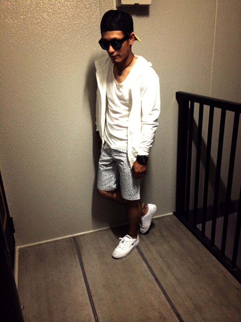 キャップ/BEAMS パーカー/不明 インナー/H&M ショートパンツ/GU シューズ/LACOSTE この前買った、GUのジラフ柄ショートパンツでコーデしてみました!! 日本負けたーー涙