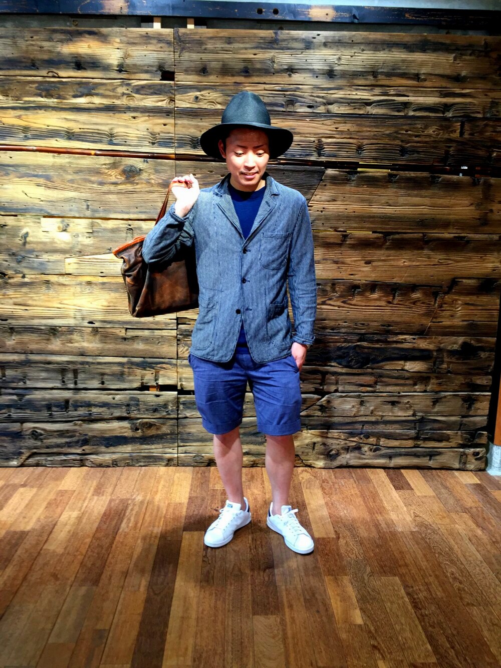 インディゴ天竺のジャケットをカーディガンのように羽織るスタイルングがこの夏のお気に入りスタイルです!