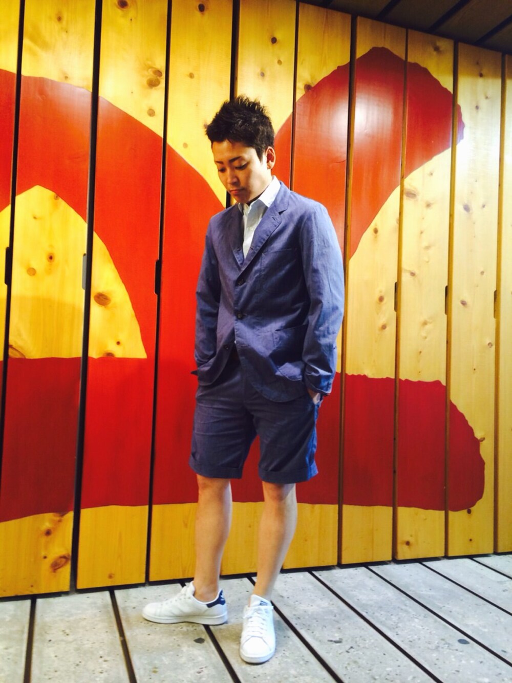 ショートパンツのセットアップスタイル! シャツはお気に入りのチェック柄!! スニーカーでさらに夏を感じるお気に入りのコーディネート!!