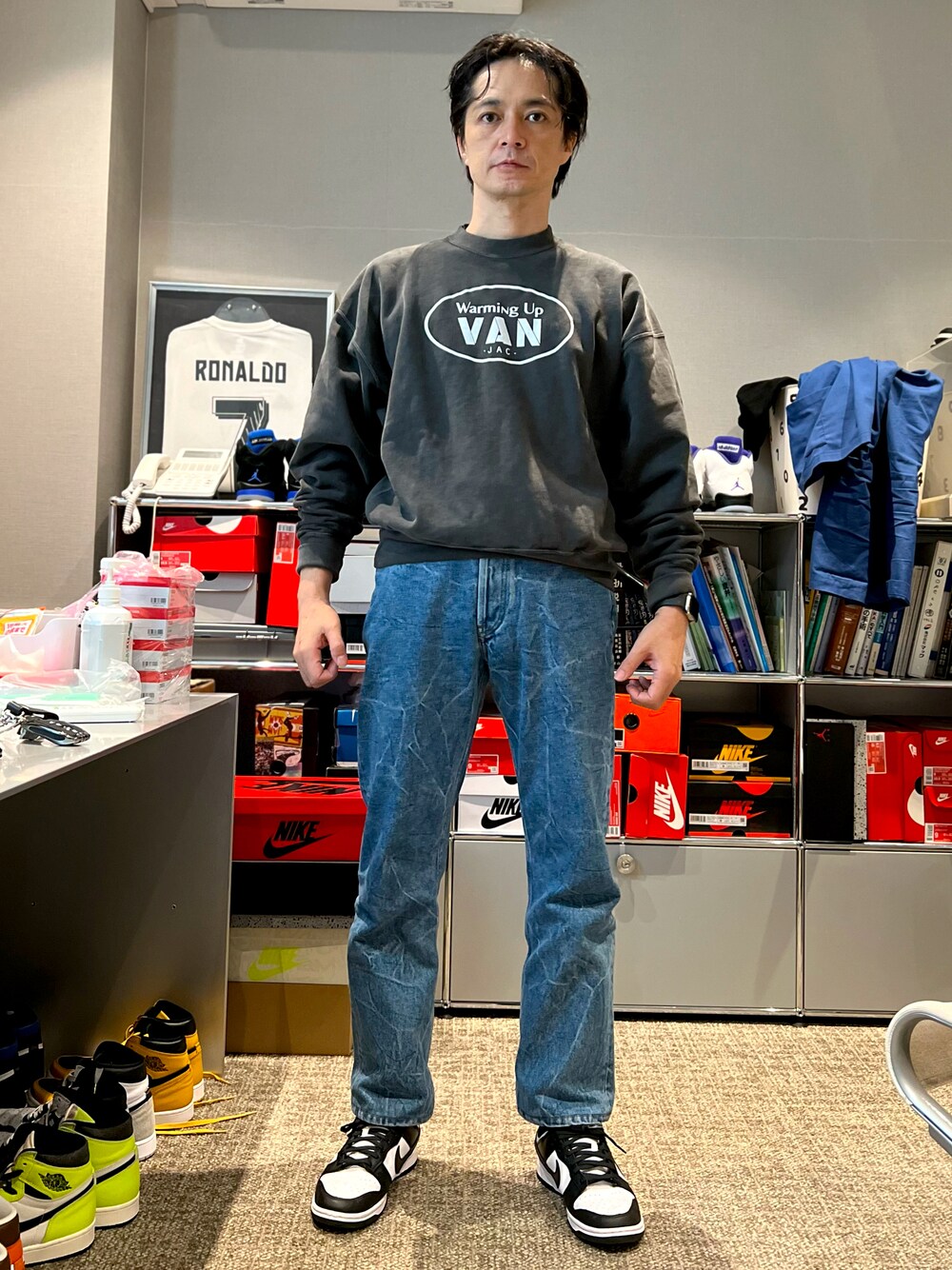 VANの厚めのスウェットとデニム スニーカー 普通すぎるスタイルで