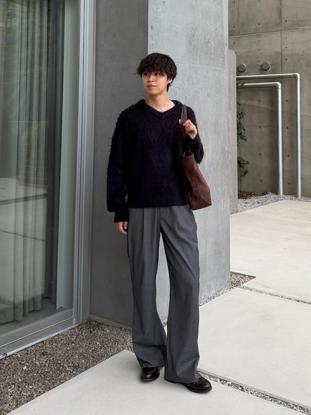 Takamitsuのニット/セーター「【LURAKU】Brushed Wool V-neck Knit / LURAKU ブラッシュドウールVネックニット」を使ったコーディネート
