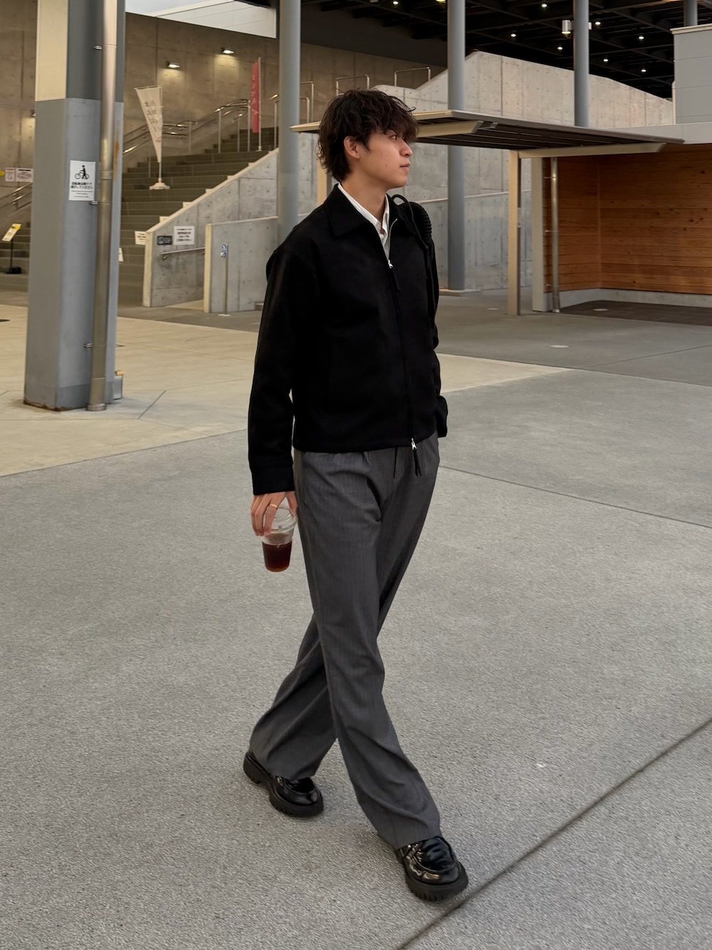Takamitsuのブルゾン「【LURAKU】Synthetic Suede Zip Jacket / LURAKU シンセティックスエードジップジャケット」を使ったコーディネート