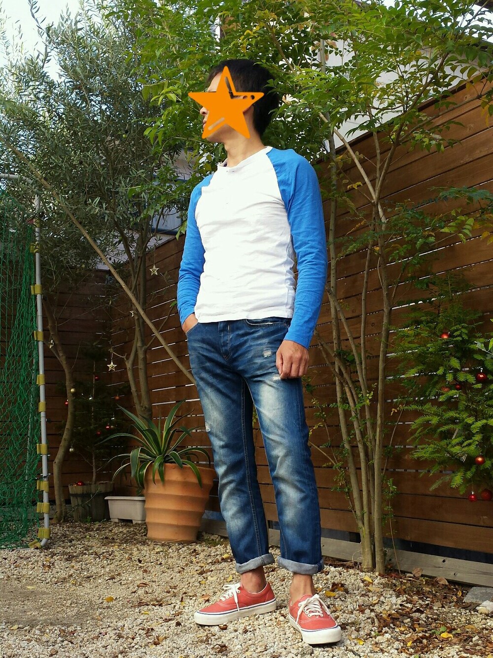 ラフコーデ★ VANSのスニーカーは鎌倉の シェルショア(CherShore) で購入したもの★ クラシックなオレンジ色でお気に入り★