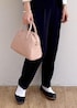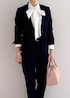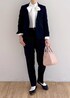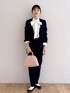 シンプルなセットアップはワンセットあると安心です。インナーのブラウスで華やかさをプラスしてみました。