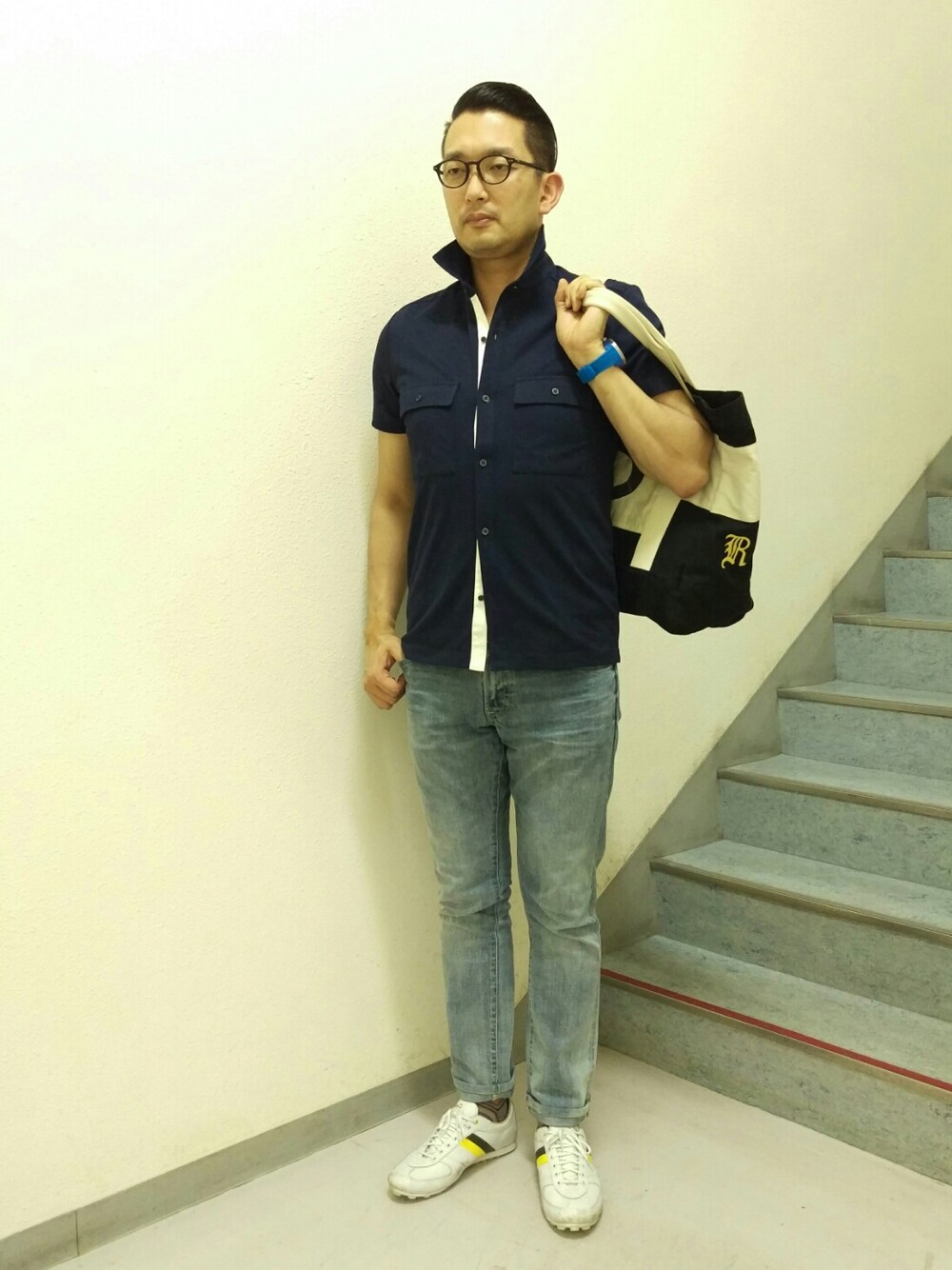 UNIQLO×Theoryのポロシャツ。 ボタン開ければ白いラインがのぞいてカジュアル感が出ます。 後で投稿しますが、ボタン全て閉じるとONスタイルにも使えます。 さらには両胸ポケットで巨乳も隠せる(^_^;) そんなわけで一枚でいろいろ着まわせられるので、ヘビロテ間違いなしです。