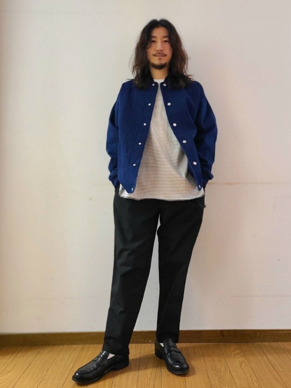 164cm/普通体型 ┈┈┈┈ 【SIZE】 T-shirt:Free(Ladys) Outer:M Bottom:M ┈┈┈┈ ➣T-shirt ゆったりシルエットの裾ラウンドロンT。 こちらはレディースアイテムですが、男性の方も是非! レイヤードが多い時期は、裾ラウンドのTシャツを選ぶとGOODです。 ステッチが特徴的でカラー違いで持っておきたくなる汎用性◎の万能アイテム。 ➣Outer デニムで仕立てたゆったりシルエットのMA1. 身幅が広いゆったりサイジングなので、体型を選ばずにどなたでもお召しいただけます。 しっかりとしたデニム生地でガシガシ使えるのも、着脱の多い春アウターと相性バッチリです。 ➣Bottom 説明不要の万能ボトム、シェフパンツをSS仕様で! シーズン毎に買い足しても、フルに使えるシェフパンツ。 ウェストゴムでストレスフリー。 ちょうど良いゆったりサイズで、コーディネートを選びません。