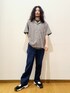 164cm/普通体型 ┈┈┈┈ 【SIZE】 T-shirt:M Shirt:M Bottom:M ┈┈┈┈ ➣T-shirt 滑らかな肌触りが快適な着心地のTシャツ。 暑い夏一枚で着ても◎な万能T。 シルエットスムースな着心地が肌にサラリと滑るような感覚。 ➣Shirt 小紋柄が大人な印象のオープンカラーシャツ。 総柄ですが、小紋柄なので落ち着いた印象でお召しいただける一枚。 サラッとした生地感でありながら適度にハリがあるので、クリーンな雰囲気に。 ➣Bottom 11.5オンスのしっかりデニム。 スッキリとしたテーパードシルエットで雰囲気バッチリなアイテムです。 ベーシックな3カラーが使いやすい一本に。 シリーズにはワイドシルエットもございます。