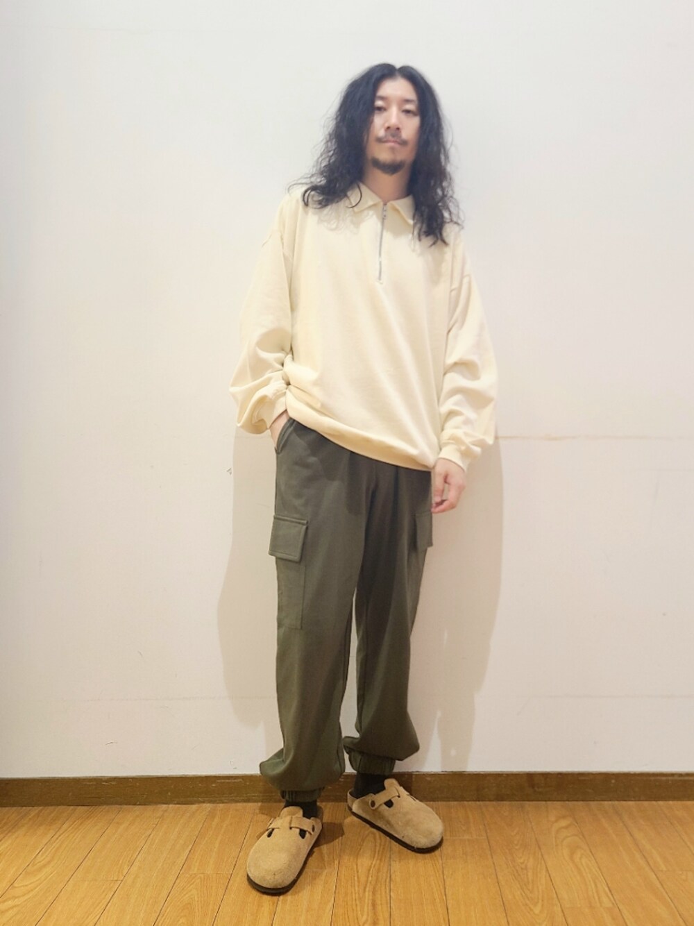 アライタカノリ(warehouse あみプレミアムアウトレット)のスウェット「ハーフジップ スウェットプルオーバー」を使ったコーディネート