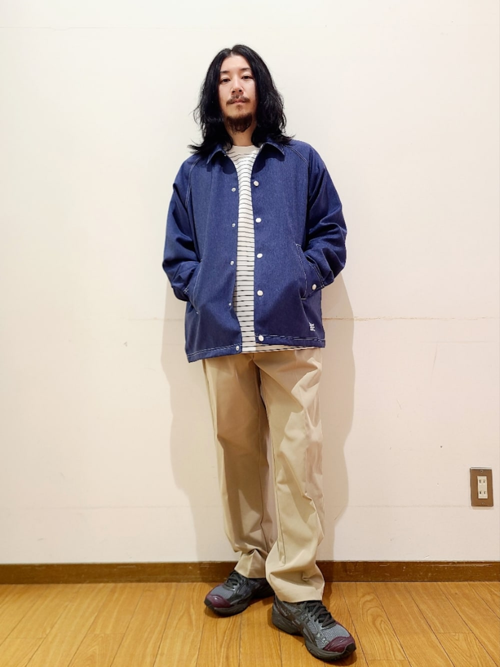 164cm/普通体型 ┈┈┈┈ 【SIZE】 T-shirt:M Outer::M【セットアップ対応】 Bottom:M ┈┈┈┈ ➣T-shirt ゆったりシルエット+ダンボール生地のモチッと感が着心地ばつぐんのボーダーT。 ストレッチもしっかり利いており、一枚でお召しいただいても透けない肉厚さ。 ➣Outer【セットアップ対応】 シンセティックデニムがライトな着心地のコーチジャケット。 使いやすいデニム×コーチジャケットの鉄板アイテムはシーズンごとに持っておきたいアイテムです。 ➣Bottom しっかりめの生地感がガシガシ履けるワイドパンツ。 ポリツイルなので、乾くのもスピーディーで取り回しのしやすいアイテム。 ウェストゴムでストレスフリーなので、どんな体系の方にもマッチします。