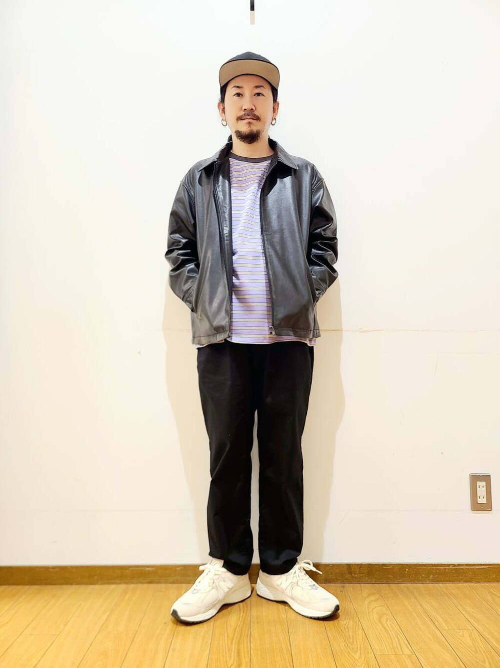 164cm/普通体型 ┈┈┈┈ 【SIZE】 T-shirt:M Outer:M【セットアップ対応】 Bottom:S【セットアップ対応】 ┈┈┈┈ ➣T-shirt ベーシックなボーダーロンTを起毛の秋仕様で。 様々なコーディネートにマッチする定番アイテム。 ➣Outer【セットアップ対応】 フェイクレザーのCPOジャケット。 光沢を抑えたマットな仕上がりで、セットアップでの着用が断然おススメ。 パーカーをインナーにすれば冬にもお召しいただけます。 ➣Bottom【セットアップ対応】 フェイクレザーの5ポケットパンツ。 光沢を抑えたマットな仕上がりで、セットアップでの着用が断然おススメ。 フェイクレザーパンツは一見強めの印象ですが、すっきりシルエットでどんなコーディネートにもマッチします。