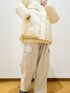 164cm/普通体型 ┈┈┈┈ 【SIZE】 Tops:M Outer:One(Women) Bottom:M【セットアップ対応】 ┈┈┈┈ ➣Tops ステッチがかわいらしい印象のモヘアライクニット。 身幅が広めでゆったりお召しいただけますので、ストレスフリーな着心地。 モヘアライクでふんわり。 ➣Outer 袖の取り外しができる2WAYのダウンジャケット。 たっぷりとしたボリューム感のスタンドカラーが暖かくお召いただけます。 タートルネックやハイネックとの相性が◎。 ➣Bottom【セットアップ対応】 フリース素材の暖かなカーゴパンツ。 シンプルなカーゴパンツをいつもと違う雰囲気でお召いただけます。 優しいカラーリングが冬ならでは。 セットアップでの着用もおすすめです。