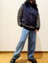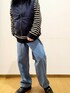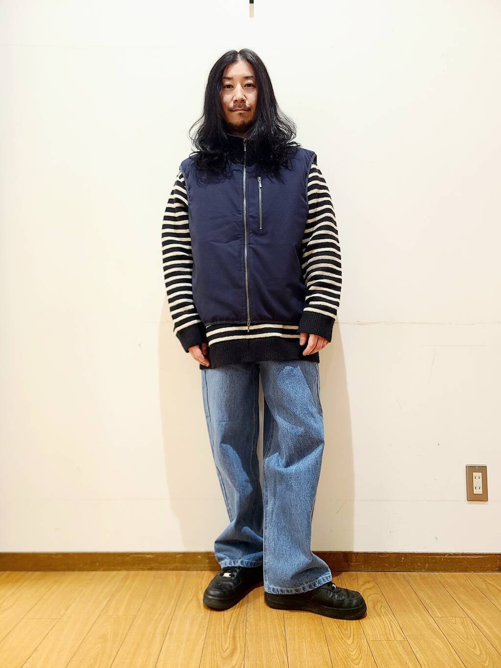 164cm/普通体型 ┈┈┈┈ 【SIZE】 Tops:M Outer:M Bottom:M ┈┈┈┈ ➣Tops ふんわり、やわらかな素材感のボーダーニット。 冬に嬉しい肉厚なニットですが、やわらかな生地感のおかげでストレスはなく、非常に着やすいアイテムです。 シルエットはベーシックなので、様々な着回しができるのも嬉しいポイント。 ➣Outer TEAM Nのフルジップ中綿ベスト。 裏地が鮮やかなカラーリングで抜け感もある一枚。 ダブルジップなので着方は様々楽しめます。 ➣Bottom ストレート&シンプルなデニムパンツ。 はいてみると、割とワイドな印象。 何本も持っておきたいシンプルデニムの代表格。