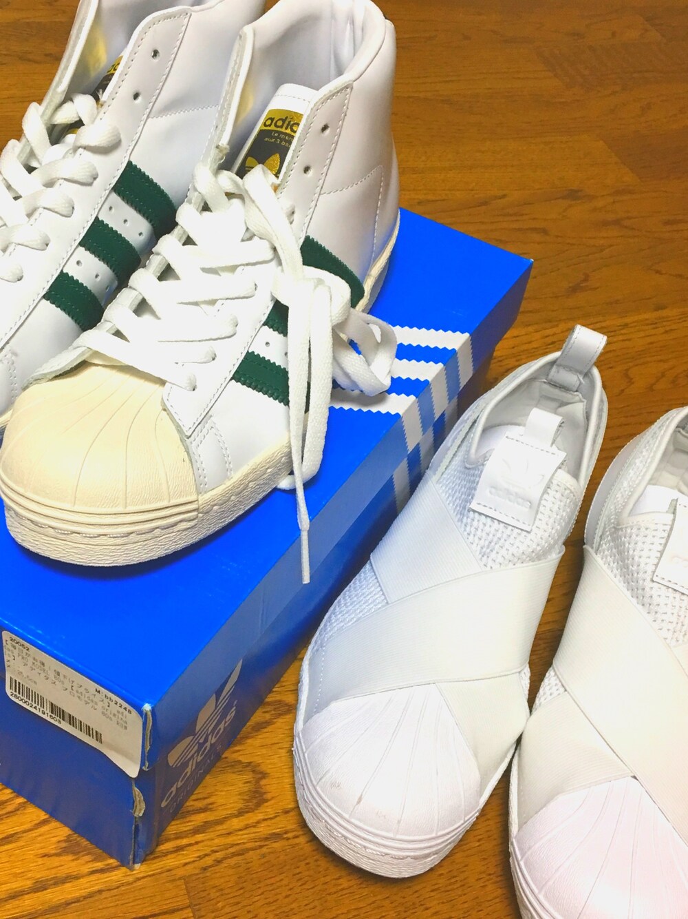 届いた!(*´Д`*) グリーンのハイカットとオリジナルスリッポン。次はスミスかなー 靴が増えてきたーーーーー!☺️ 今日は、バスケ最高👍