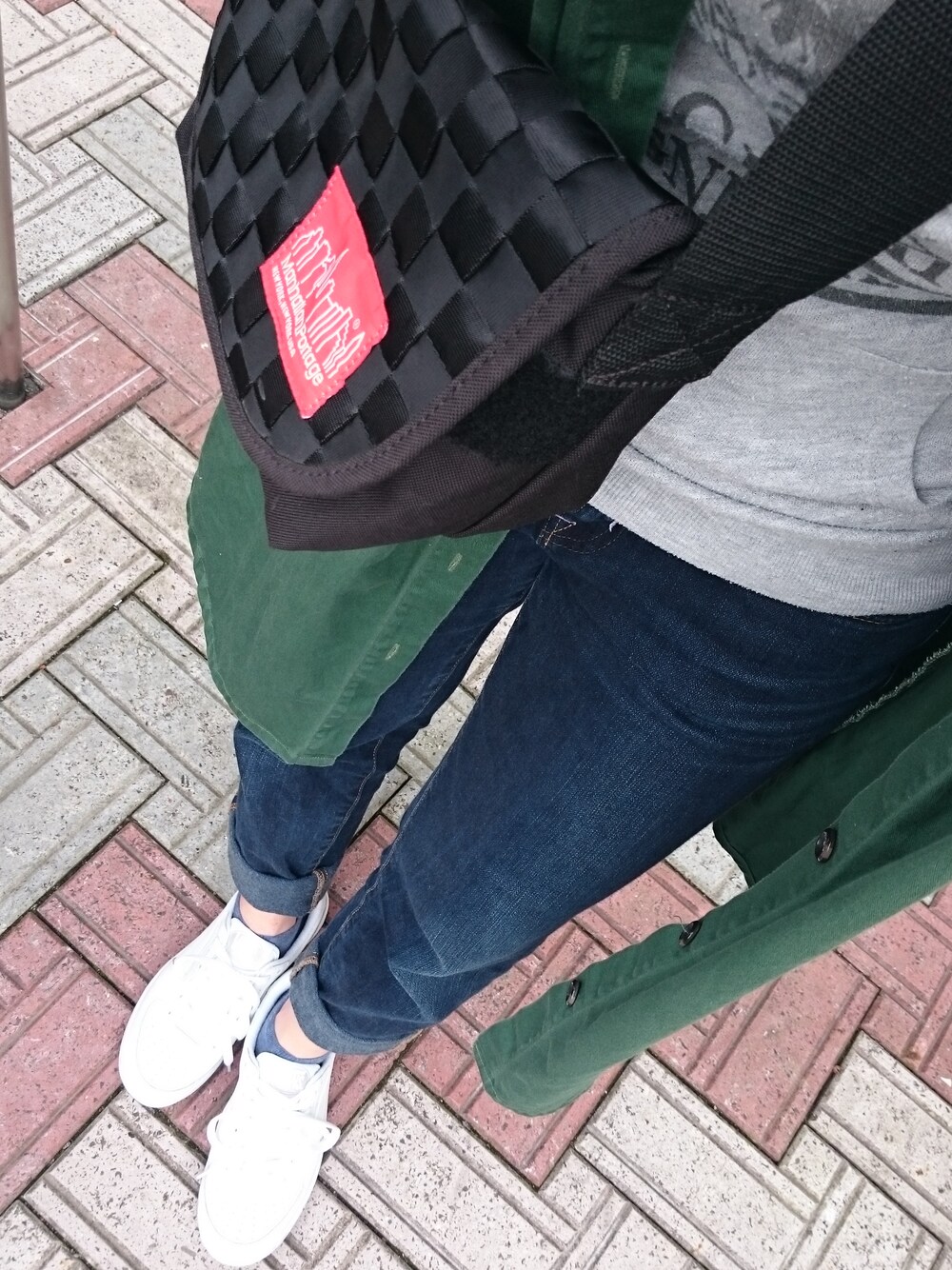 パーカーもデニムパンツも 何年着てるだろうってくらい着てる…。 このミリタリーシャツワンピ、 厚手だからパーカーの上にも羽織れるー。