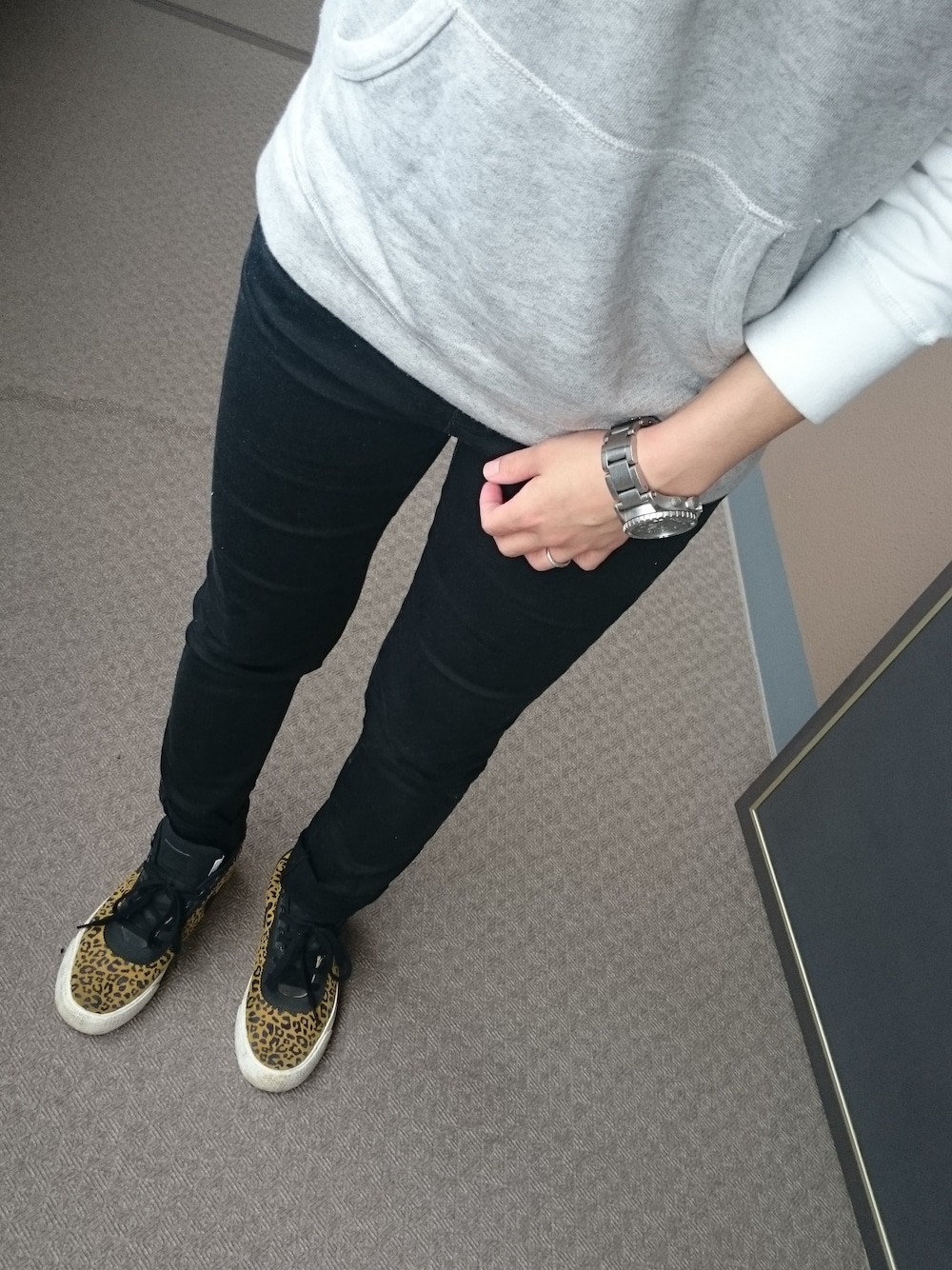やはり雨の日は なぜかロックな気分。 イコール靴は豹柄で決定。 シンプル過ぎるモノトーンコーデです。 寂しすぎるので 久々にNIXONのごつい時計してみました。 お気に入りのこの時計 だけど子育てには不向きすぎる。 残念すぎる。