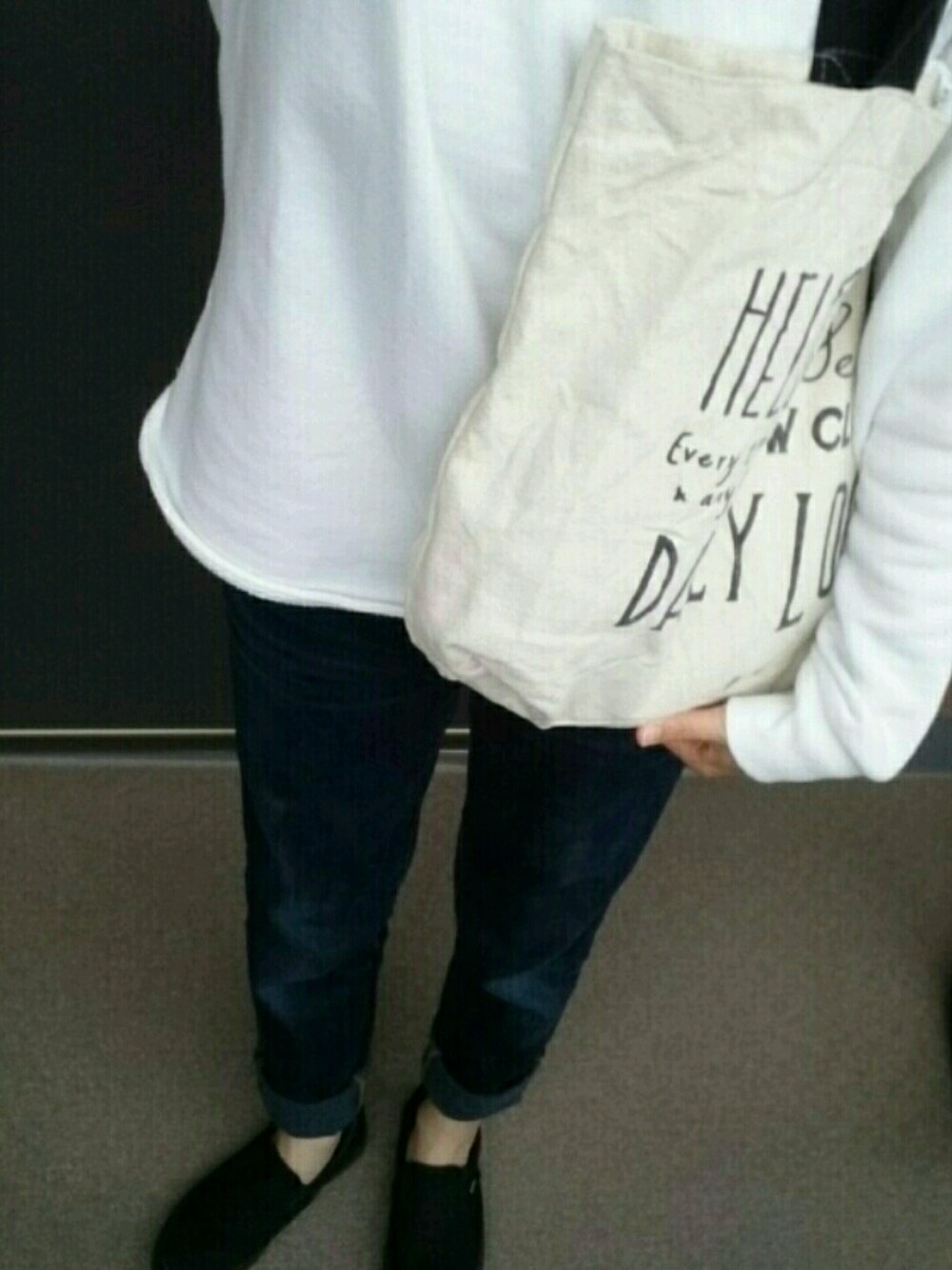 シンプル過ぎる手抜きコーデ。 ポイントも何もないほど。 帽子かヘアアアクセで工夫しないと… ほんとずぼら感半端ない。