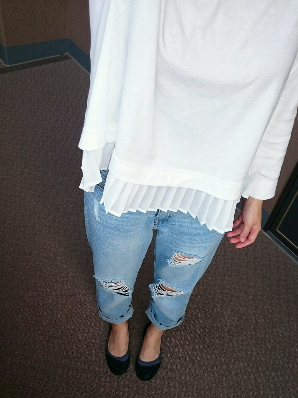 甘辛コーデ~ トップスは 後ろにスリットが入ってて シースルーになってます。 あんまり甘コーデが得意じゃないから このトップスは冬に買って 着たの二回目…。 クラッシュデニムと合わせて ようやく着れたって感じ。