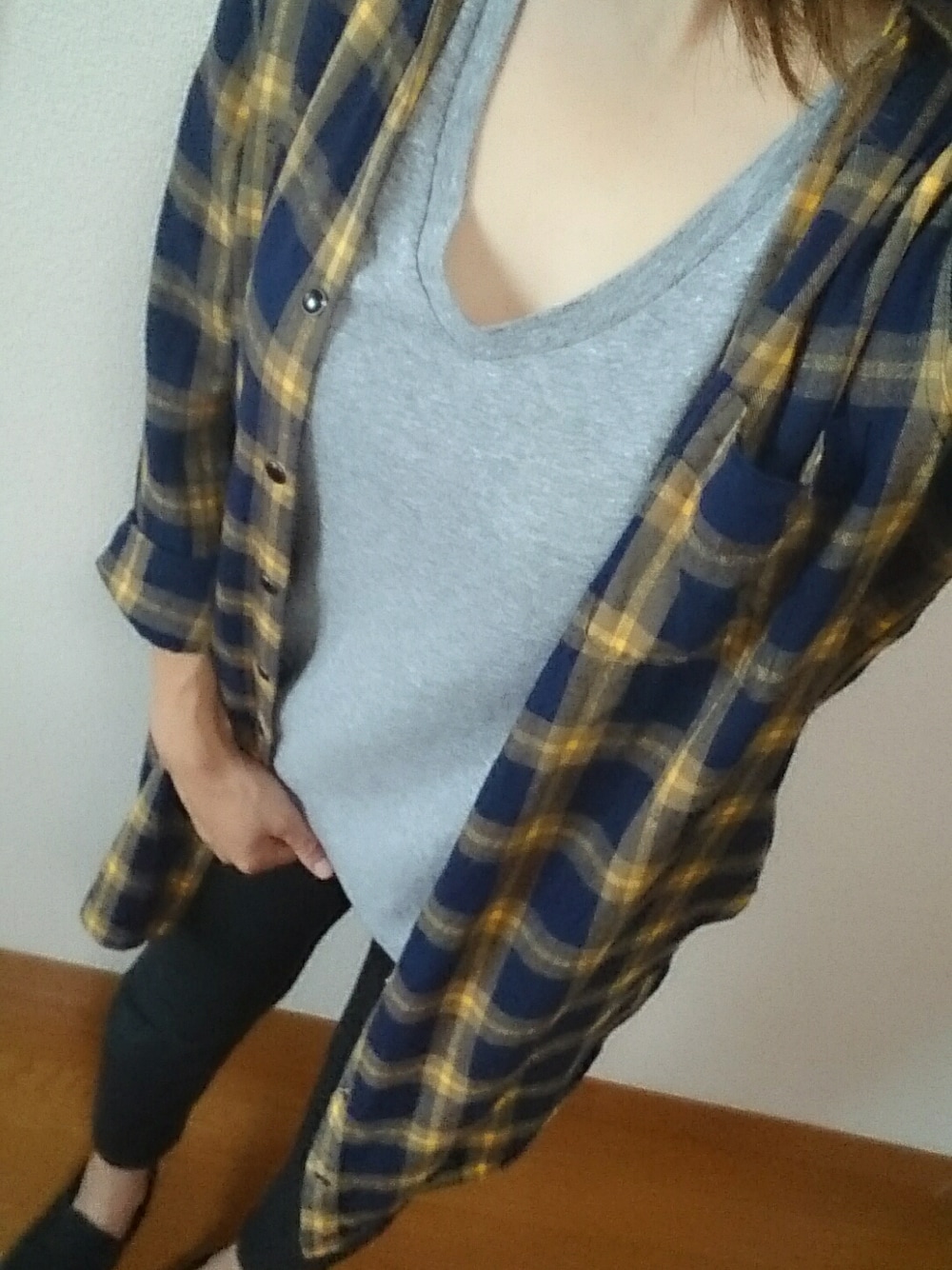 雨だなぁ。肌寒いなぁ。 チェックシャツ羽織るだけで 即秋モード。 今年も活躍しそうな予感!