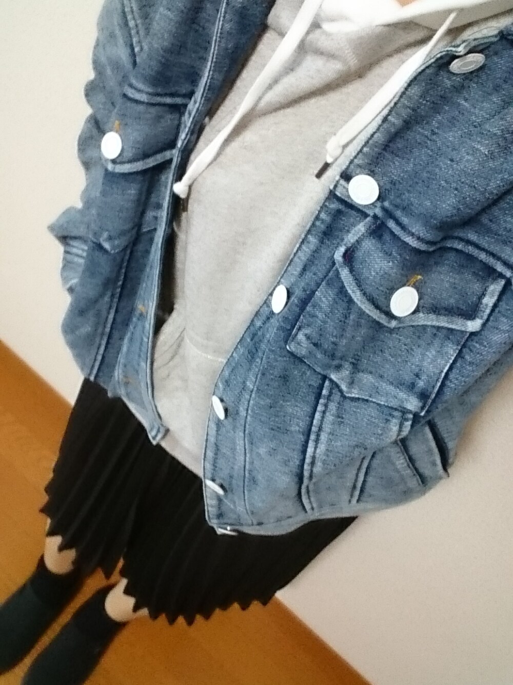 寒いですね。 このジャケットのゆったり感と白いボタンが好きで、今年も着れるのが嬉しいのです。 モノトーン×デニムが好きです。