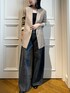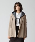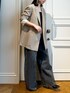 ボタンレスのミニマムなデザインで、少し大きめのショルダーが今っぽいジャケットです。 ゆとりがあるのでハーフコート感覚でも羽織れてロングシーズン活躍しそう。 袖裏にもストライプの裏地を入れているので幅太目にロールアップして着ると可愛いです。
