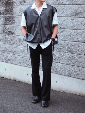 レイヤードスタイル フレアパンツスタイル シンプルコーデだけど目を引くコーデ