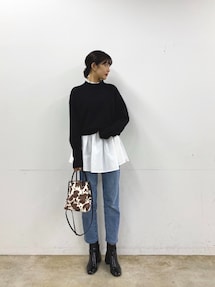 諭吉⛄️のニット/セーター「【WEARISTA 諭吉】ニット&フリルシャツセット」を使ったコーディネート