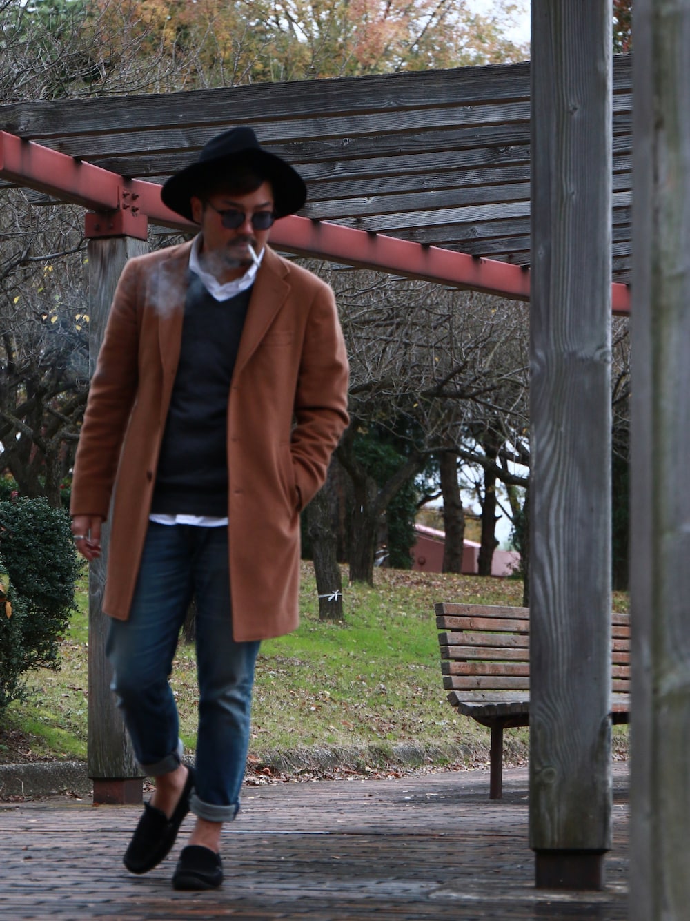 T.TAKAHIROのチェスターコートを使ったコーディネート