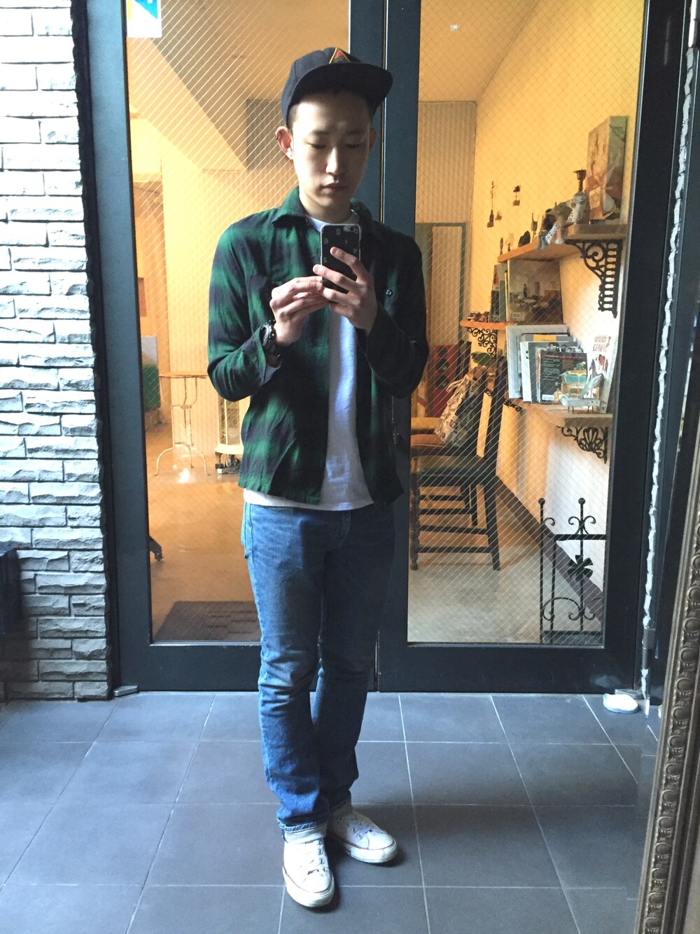 ブーツカットのNハリのデニムに、チェックのシャツを合わせ、グランジのコーディネートにしてみました instagram→takahiro_bt