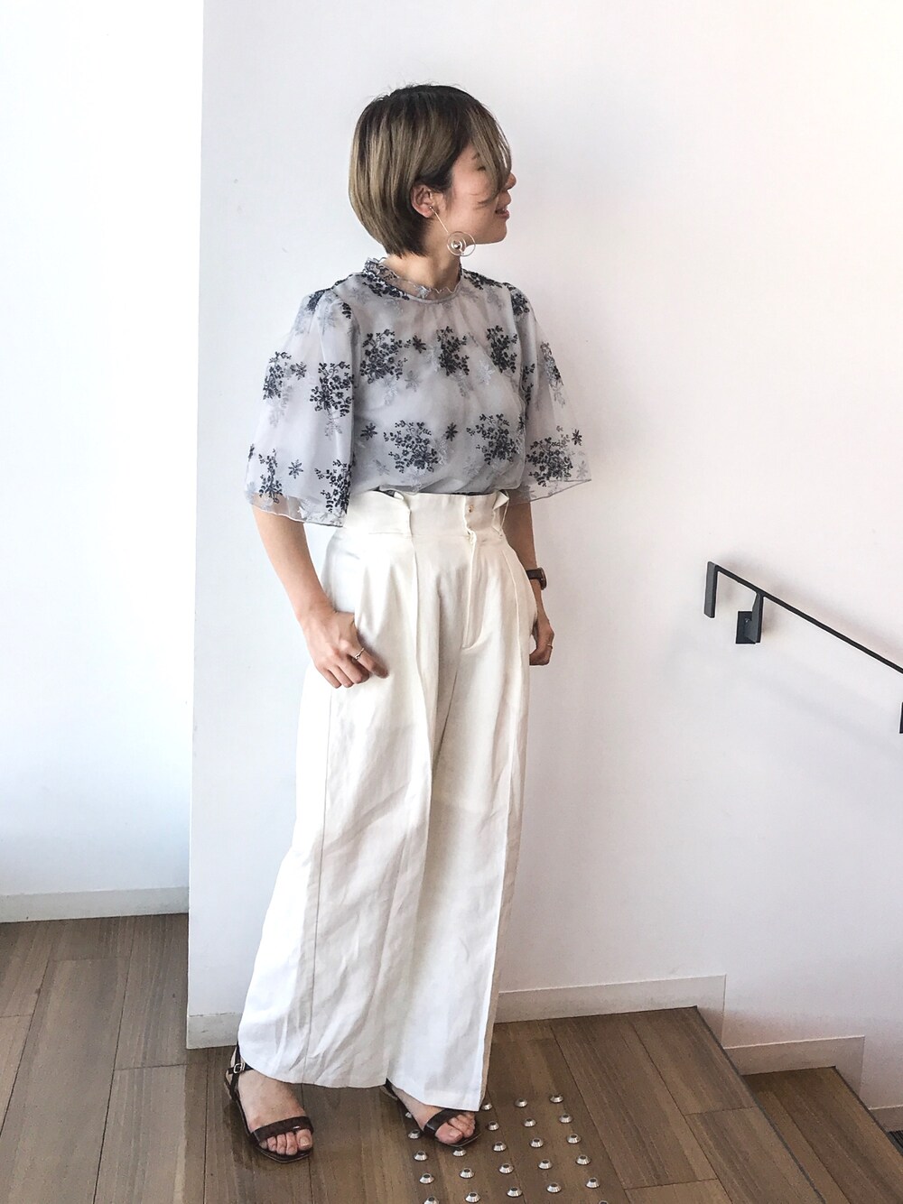 人気のフローラル刺繍ブラウスが 半袖で入荷しました✨ 落ち着いたカラーの刺繍なので、 大人っぽくて上品💕 白のリネンパンツとの合わせで、 大人カジュアルコーデにしました✌︎