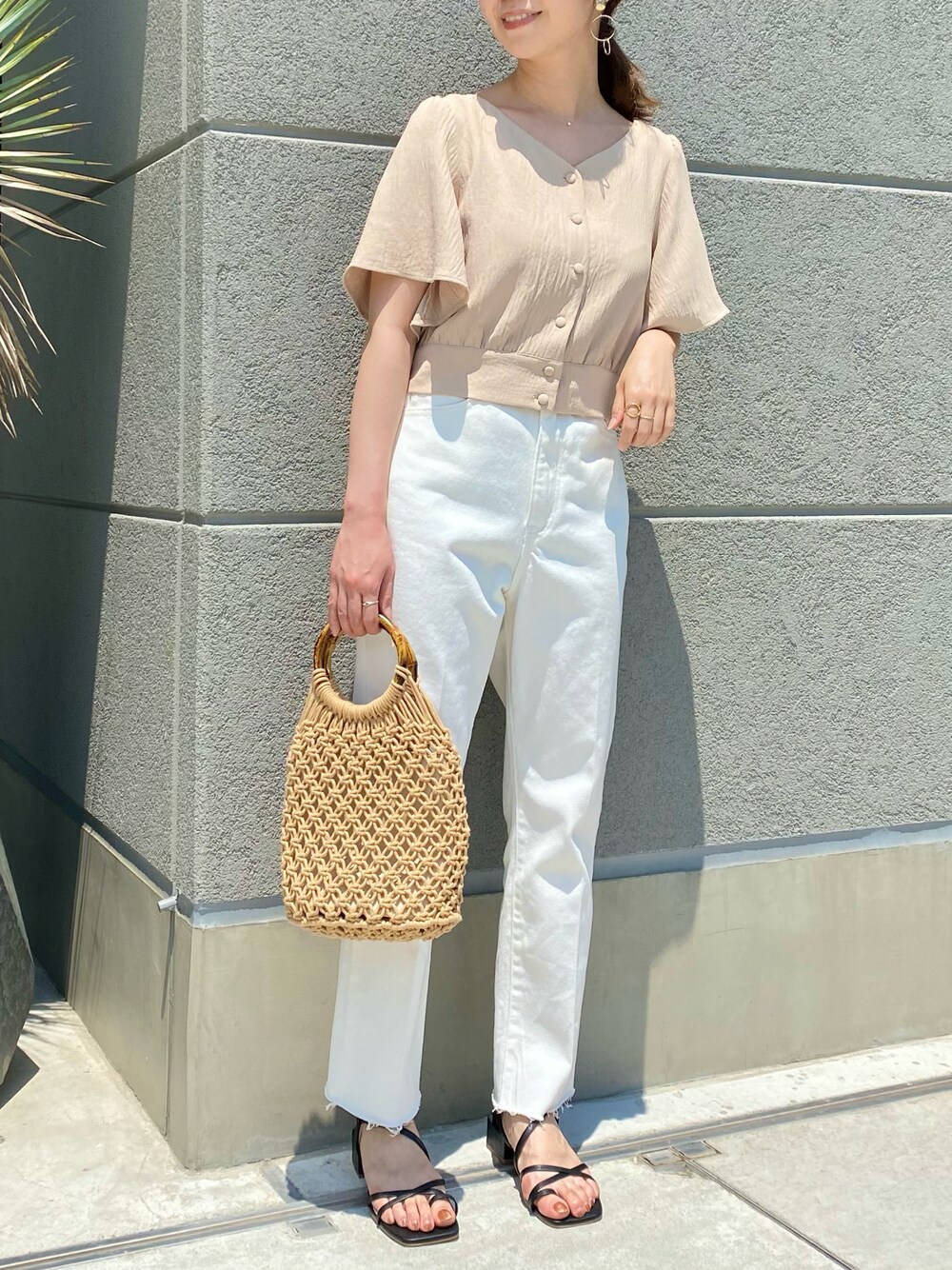 大人の淡色コーデ! ショート丈のブラウスは ハイウエストボトムでバランス◎