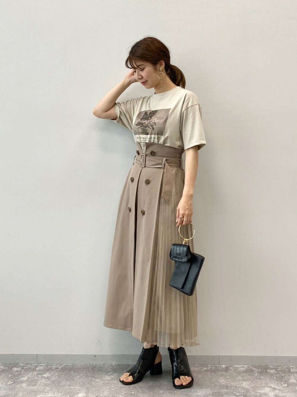 ベージュのワントーンコーデ💕 小物はブラックなので、甘くなりすぎないのがポイントです!