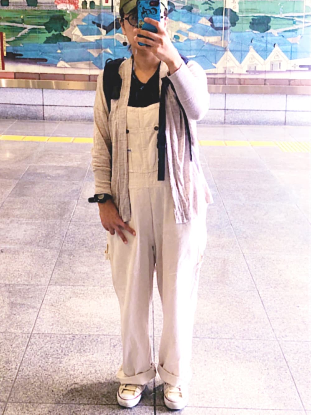少し前のコーデです。 オーバーオールはオフホワイトで合わせやすく子供っぽくならず気に入ってます😊