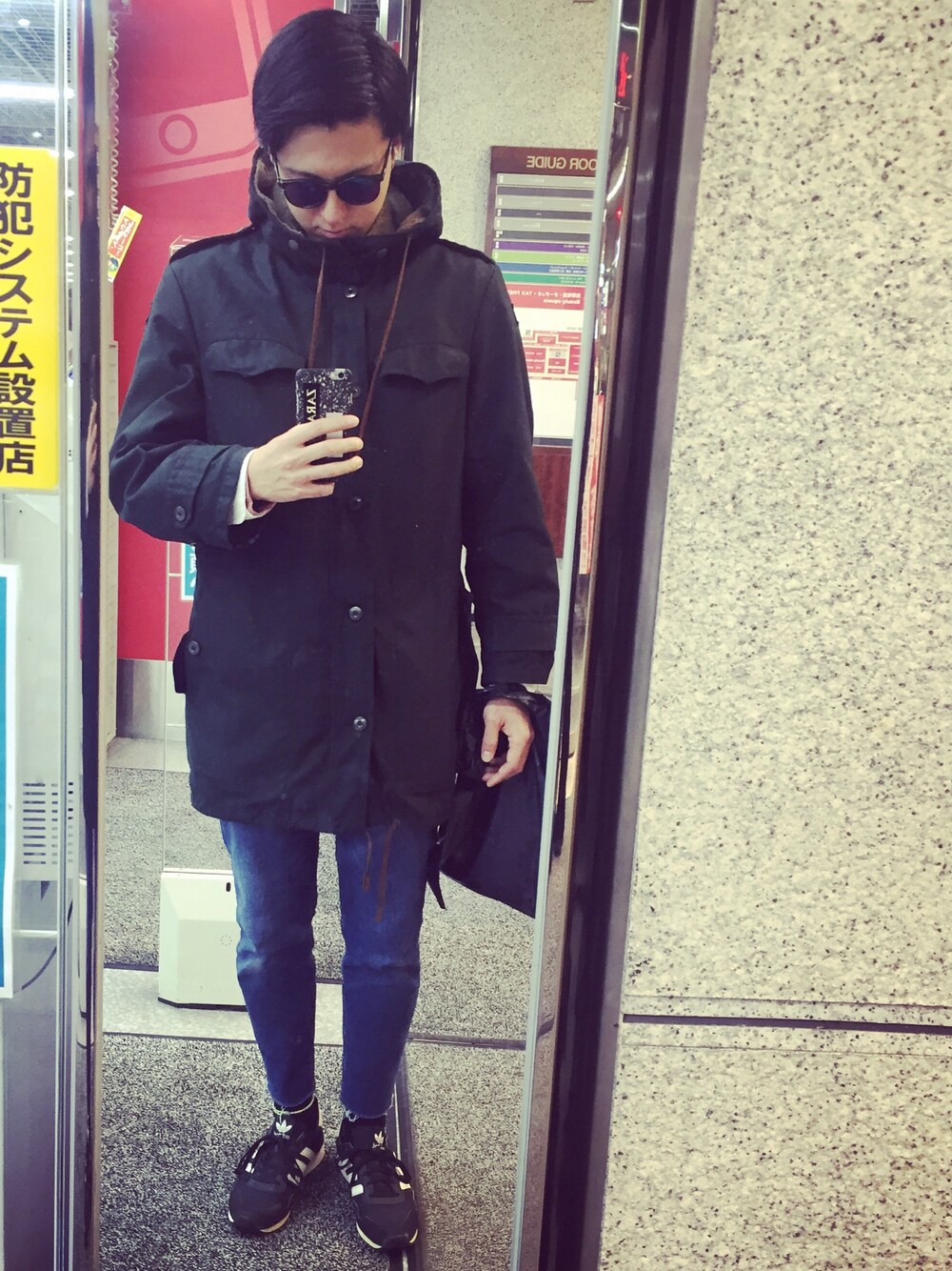 アイテム調べたけど出てこなかったので 指輪のタグだけつけてます😂 すいませぬ。 広島帰ってます。 買い物しました。 このコーデは 上から サングラス ZARA モッズコート 古着 デニムパンツ ZARA スニーカー アディダスオリジナルス(古着) どうもこんにちわ。 外国人になりきれなかった日本人です。 おやすみなさい。 笑