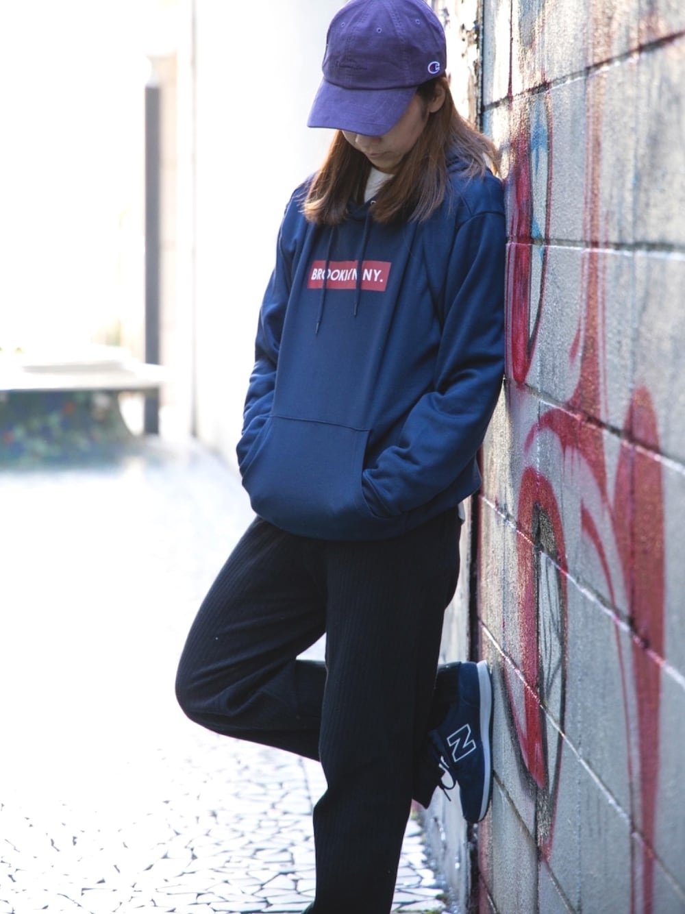 kaaaaanaのパーカー「裏起毛 ボックスロゴプリント スウェットプルパーカー」を使ったコーディネート